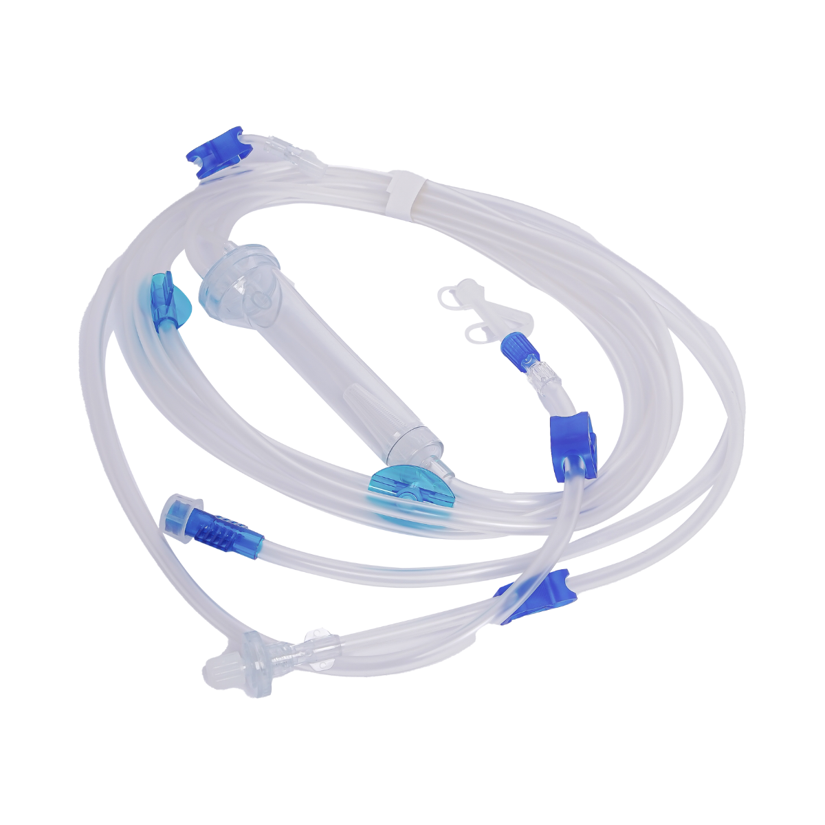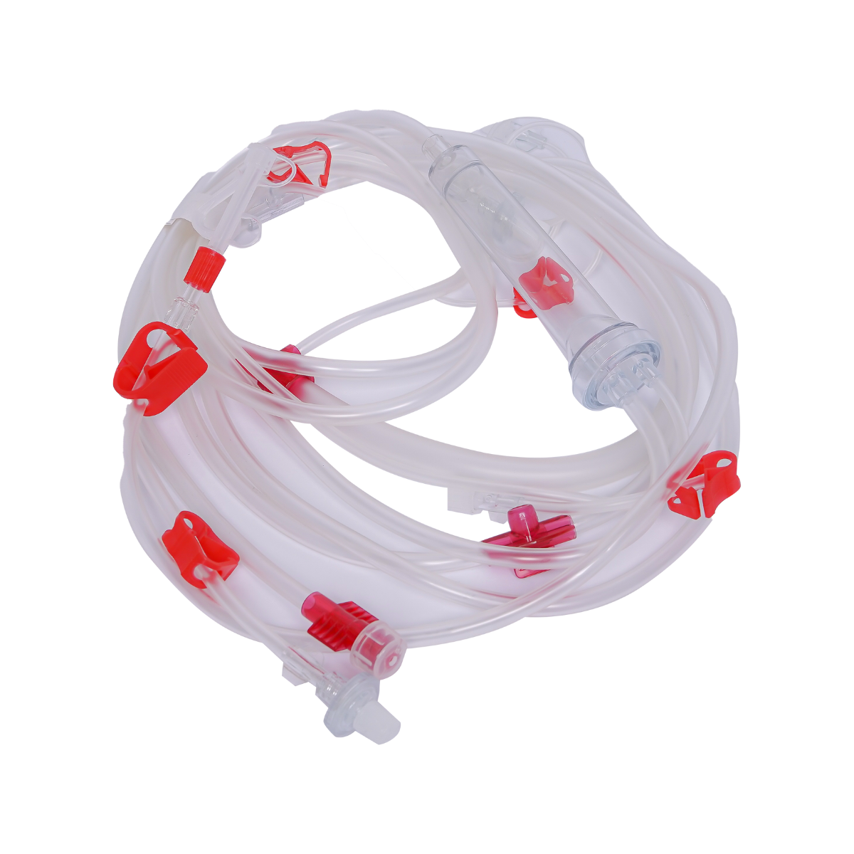 El dispositivo médico para hemodiálisis está compuesto por 2 líneas arteriales y venosas. Este producto se conecta con el dializador al paciente en tratamiento de diálisis.